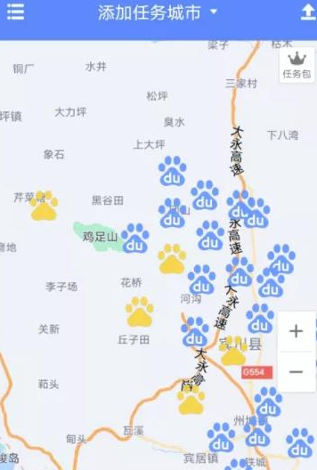 由于官方没确定具体开放哪些城市,所以需要自测。这是云南大理的任务包,里面蓝色的就是任务,点击就可以规划路线。