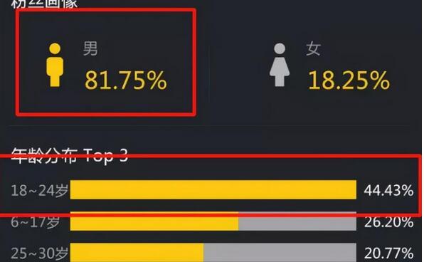 从账号粉丝画像分析这类游戏账号的粉丝多为18~24岁的男性粉丝,这类男性粉丝消费能力也是相当强的,有利于后期变现。