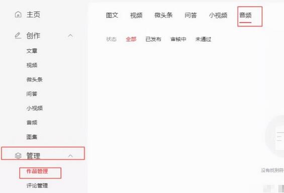 在“头条号后台-管理-作品管理-音频”里,进行音频内容管理