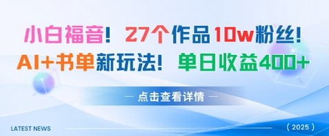 27个作品10w粉丝,AI+书单新玩法,单日收益4张+