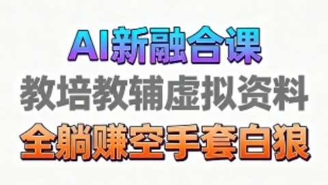 虚拟(电子)资料,一直是可以躺賺,甚至是可以说是空手套白狼的五本生意,为什么呢,因为这个事情是太简单了,简单到你就是不费吹灰之力,就能上手,就能操作。今天讲的这个虚拟资料,是非常垂直的教材类(融合类教学)并不是普通虚拟资料,你拿来转卖,然后烂大街的虚拟资料。以前觉得做融合类教学是非常难的事情,你要懂很多内容,要懂很多技术,然后结合在一起才能生成对应的视频和教材和素材,然后才能汇聚成合集。自从AI技术越来越成熟,自从卡通也能生成电子数字形象,然后对口型,然后搭配上肢体动作,就是活脱脱的真人版讲解。尤其现在学校基本上都是大屏幕现代化教学,尤其是小学,这些课程,很多老师都有需要,很多学校,很多教培都有需要,但是他们不会做。想要做一个很好的公开课视频,你知道吗?对于一个老师的升职是非常重要的环节。所以,聪明的宝子,抓紧学起来。落地做起来!课程中包含实操,包含后端你能想到的变现实操细节,所以,全SOP课程开始!