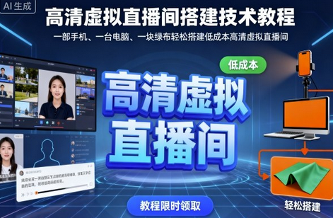 高清虚拟直播间搭建技术教程,一部手机、一台电脑、一块绿布轻松搭建低成本高清虚拟直播间