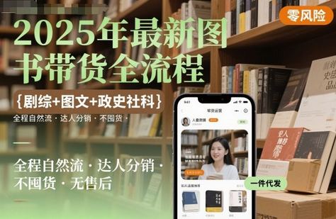 2025年最新图书带货全流程,剧综+图文+政史社科,全程自然流,达人分销,不囤货,无售后