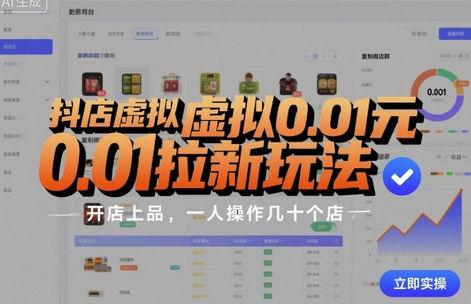 抖店虚拟0.01元拉新玩法,复制做店群,开店上品,一人操作几十个店