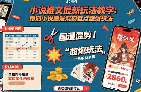小说推文最新玩法教学,番茄小说国漫混剪盘点超爆玩法,全程干货,一天收益多张