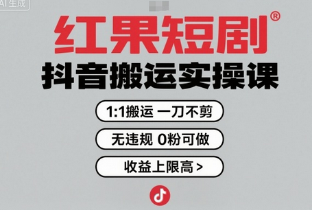 红果短剧拉新之抖音搬运实操课,1:1搬运,一刀不剪,无违规,0粉可做,收益上限高