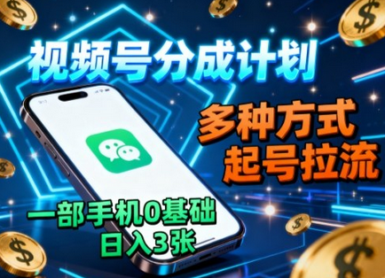 视频号分成计划,多种方式起号拉流,一部手机0基础日入3张