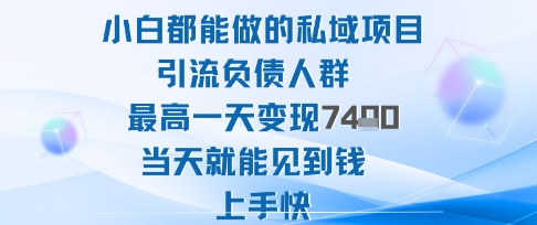 2025年小白都能做的私域项目引流负债人群最高一天变现1k+高变现难度低当天就能见到钱上手快
