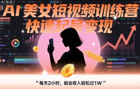 AI美女短视频训练营,快速起号变现,每天2小时,副业收入轻松过1W