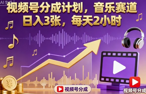 视频号分成计划,音乐赛道,日入3张,每天2小时