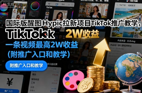 国际版醒图Hypic拉新项目TikTok推广教学,一条视频最高2W收益(附推广入口和教学)