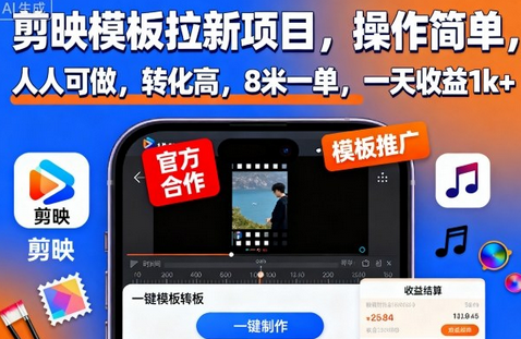 剪映模板拉新项目,操作简单,人人可做,转化高,8米一单,一天收益1k+
