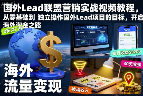 国外Lead联盟营销实战视频教程,从零基础到独立操作国外Lead项目的目标,开启海外淘金之路
