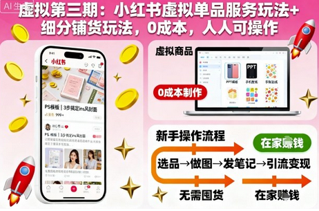 虚拟第三期:小红书虚拟单品服务玩法+细分铺货玩法,0成本,人人可操作