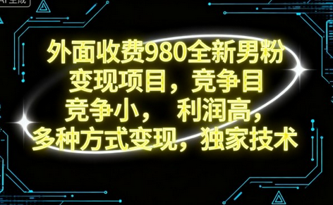 外面收费980全新男粉变现项目,竞争小,利润高,多种方式变现,独家技术