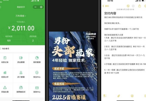 免责声明:站内部分内容由互联网用户自发贡献,该文观点仅代表作者本人。本站仅提供信息存储空间服务,不拥有所有权,不承担相关法律责任。展示内容仅作为学习交流使用,其版权归出版公司或原作者所有,本站不对所涉及的版权问题负责。如原作者认为侵权,请联系我们,我们会立即删除文章!蜗牛学社 » 外面收费980全新男粉变现项目,竞争小,利润高,多种方式变现,独家技术