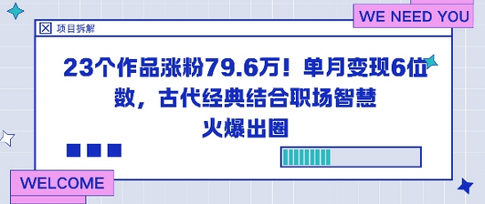 23个作品涨粉79.6W!单月变现6位数,古代经典结合职场智慧火爆出圈