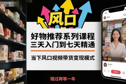 好物推荐系列课程,三天入门到七天精通,当下风口视频带货变现模式