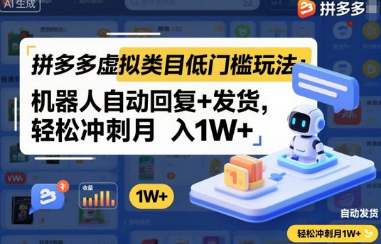 拼多多虚拟类目低门槛玩法:机器人自动回复+发货,轻松冲刺月入1W+