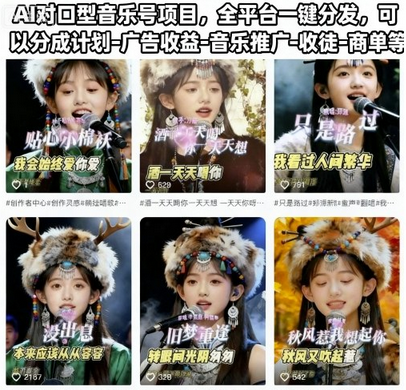 AI对口型音乐号项目,全平台一键分发,可以分成计划-广告收益-音乐推广-收徒-商单等