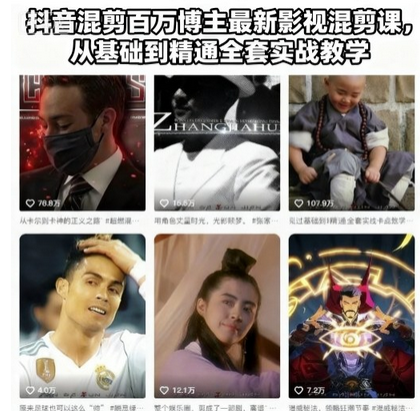 免责声明:站内部分内容由互联网用户自发贡献,该文观点仅代表作者本人。本站仅提供信息存储空间服务,不拥有所有权,不承担相关法律责任。展示内容仅作为学习交流使用,其版权归出版公司或原作者所有,本站不对所涉及的版权问题负责。如原作者认为侵权,请联系我们,我们会立即删除文章!蜗牛学社 » 抖音混剪百万博主最新影视混剪课,从基础到精通全套实战教学(更新)