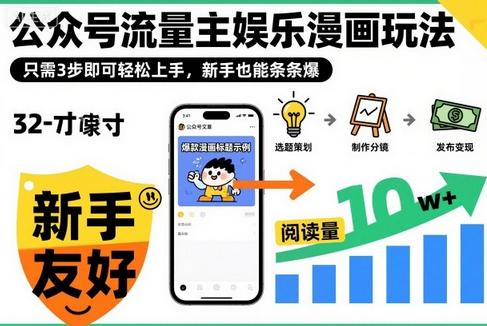 公众号流量主娱乐漫画玩法,只需3步即可轻松上手,新手也能条条爆