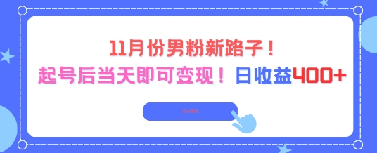 11月份男粉新路子,起号后当天即可变现,日收益4张