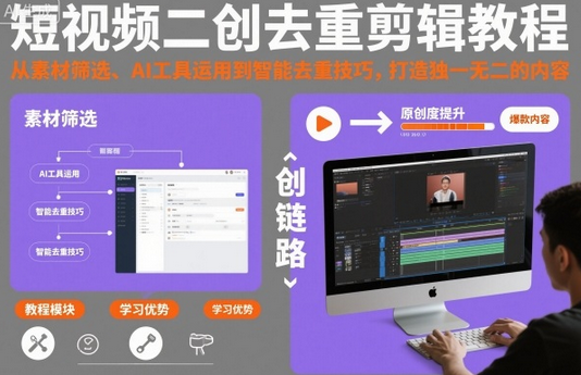 短视频二创去重剪辑教程,从素材筛选、AI工具运用到智能去重技巧,打造独一无二的内容