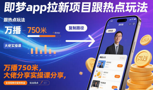 即梦app拉新项目跟热点玩法,万播750米,大佬分享实操课分享,全流程教你复制收益