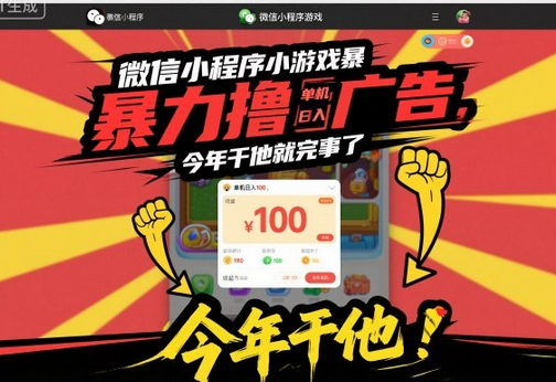 微信小程序小游戏暴力撸广告,单机日入100,今年干他就完事了