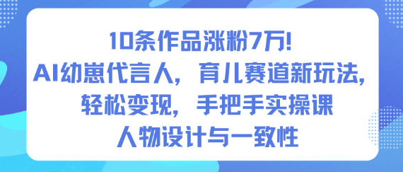 10条作品涨粉7W!AI幼崽代言人,育儿赛道新玩法,轻松变现,手把手实操课