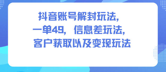 抖音账号解封玩法,一单49,信息差玩法,客户获取以及变现玩法