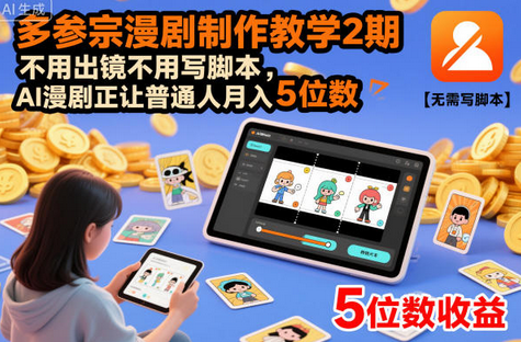 多参宗漫剧制作教学2期,不用出镜不用写脚本,AI漫剧正让普通人月入5位数