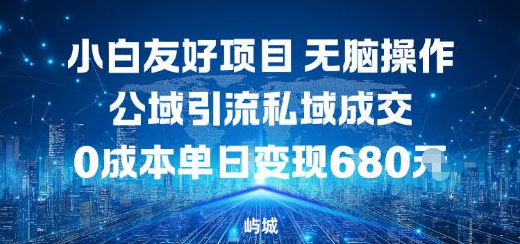小白友好项目,无脑操作,公域引流私域成交,0成本单日变现680米 项目介绍: 今天分享的这个项目操作确实是无脑的,也非常适合小白的一个玩法,公域引流私域成交,0成本单日变现680米 下载地址: 本文隐藏内容 登陆 后才可以浏览