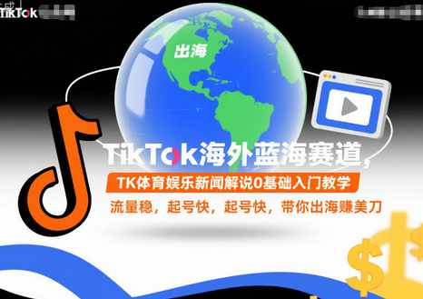 TikTok海外蓝海赛道,TK体育娱乐新闻解说0基础入门教学,流量稳,起号快,带你出海賺美刀