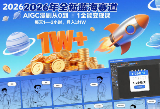 2026年全新蓝海赛道AIGC漫剧从0到1全能变现课,每天1—2小时,月入过1W
