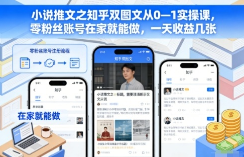 小说推文之知乎双图文从0—1实操课,零粉丝账号在家就能做,一天收益几张