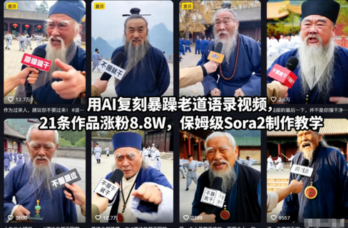 用AI复刻暴躁老道语录视频,21条作品涨粉8.8W,保姆级Sora2制作教学