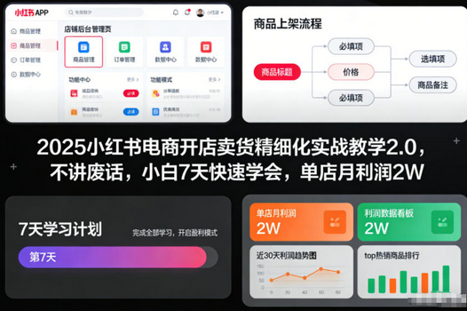 2025小红书电商开店卖货精细化实战教学2.0,不讲废话,小白7天快速学会,单店月利润2W