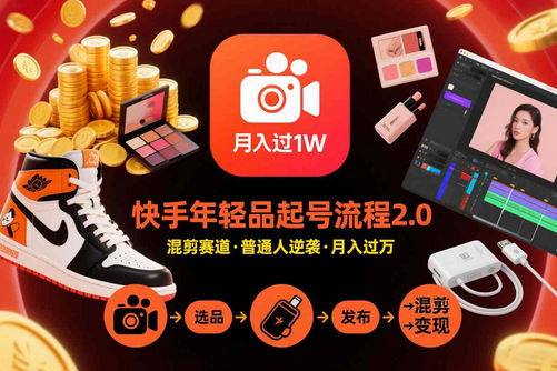 快手短视频带货年轻品起号流程2.0,快手年轻品混剪赛道,普通人也能月入过1W