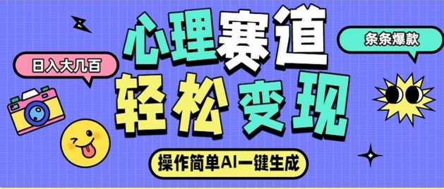 心理赛道最新玩法,AI自动生成,条条点赞过万,日收入大几张