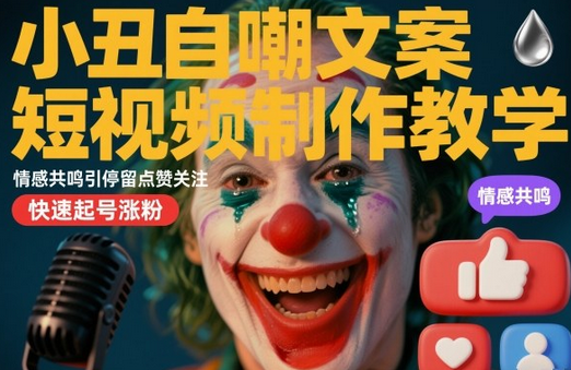 小丑自嘲文案短视频制作教学,情感共鸣引停留点赞关注,快速起号涨粉
