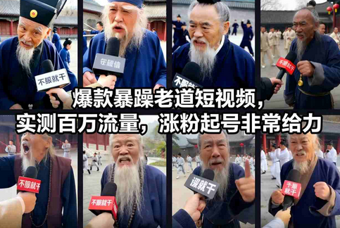 免责声明:站内部分内容由互联网用户自发贡献,该文观点仅代表作者本人。本站仅提供信息存储空间服务,不拥有所有权,不承担相关法律责任。展示内容仅作为学习交流使用,其版权归出版公司或原作者所有,本站不对所涉及的版权问题负责。如原作者认为侵权,请联系我们,我们会立即删除文章!蜗牛学社 » 爆款暴躁老道短视频,实测百万流量,涨粉起号非常给力