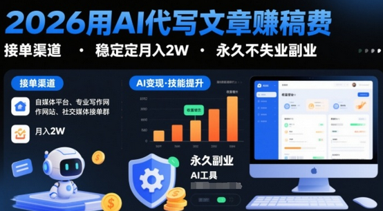 2026用AI代写文章賺稿费,提供接单渠道,稳定月入2W,永久不失业副业