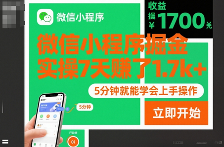 微信小程序掘金,实操7天賺了1.7k+,操作简单,5分钟就能学会上手操作