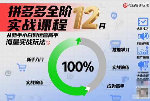 想做拼多多却不知从何下手?开店后流量寥寥、转化低迷,连基础运营都摸不清?临近12月年底旺季(双十二、年终清仓),想借势冲销量却毫无思路?担心自己是新手,学不会复杂运营技巧?这款「拼多多全阶实战课程12月」专为零基础小白、低效运营商家打造,从开店筹备到高阶运营,从日常盈利到旺季冲刺,全阶覆盖+海量实战玩法,手把手带你从新手小白快速成长为运营高手,精准抓住12月盈利黄金期!