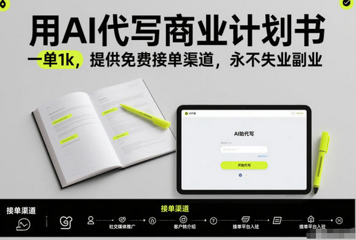 用AI代写商业计划书,一单1k,提供免费接单渠道,永不失业副业