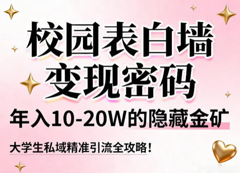 校园表白墙变现密码,年入10-20W的隐藏金矿,大学生私域精准引流全攻略!