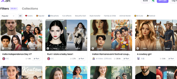 选择一个特效样图,上传一张照片,就可以得到一个和样图一样特效的图片。