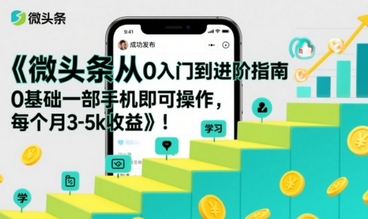 微头条从0入门到进阶指南,0基础一部手机即可操作,每个月3-5k收益